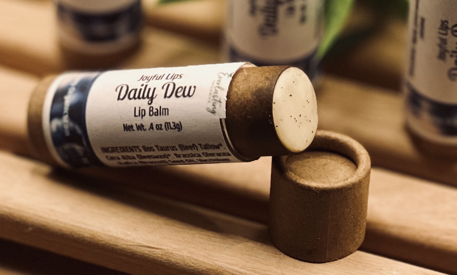 Every tube is small-batch, hand-poured, and made without water, fillers, or anything that doesn’t earn its place. At nearly half an ounce, Daily Dew is almost three times the product you’ll find in a standard lip balm — because your lips deserve more than a quick fix.